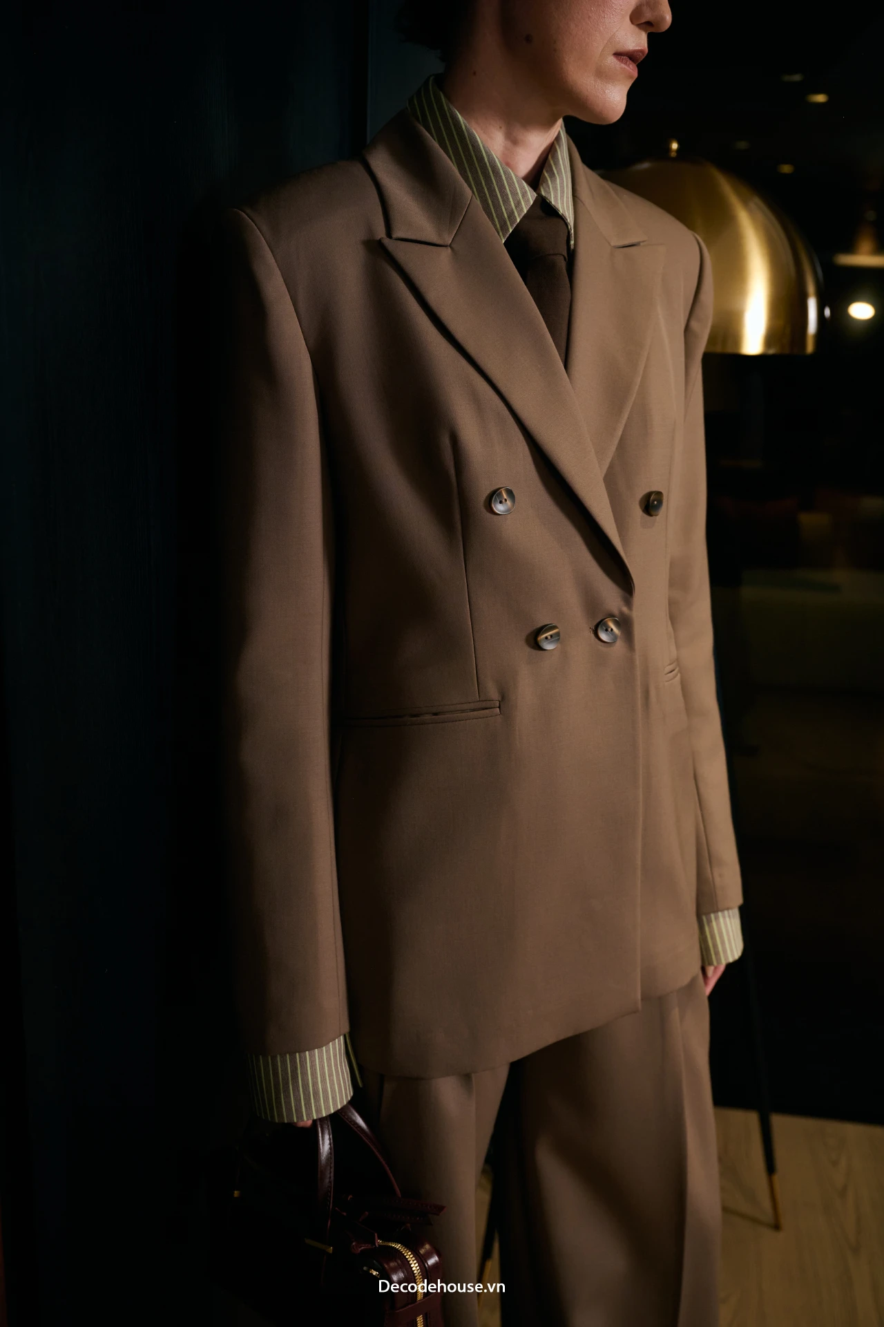 The Langham Blazer embodies a strong yet refined elegance with its relaxed oversized silhouette subtly cinched at the waist, creating balanced proportions and a modern tailored presence. Crafted from premium Scotland twill, it maintains a crisp structure while ensuring breathability and comfort.