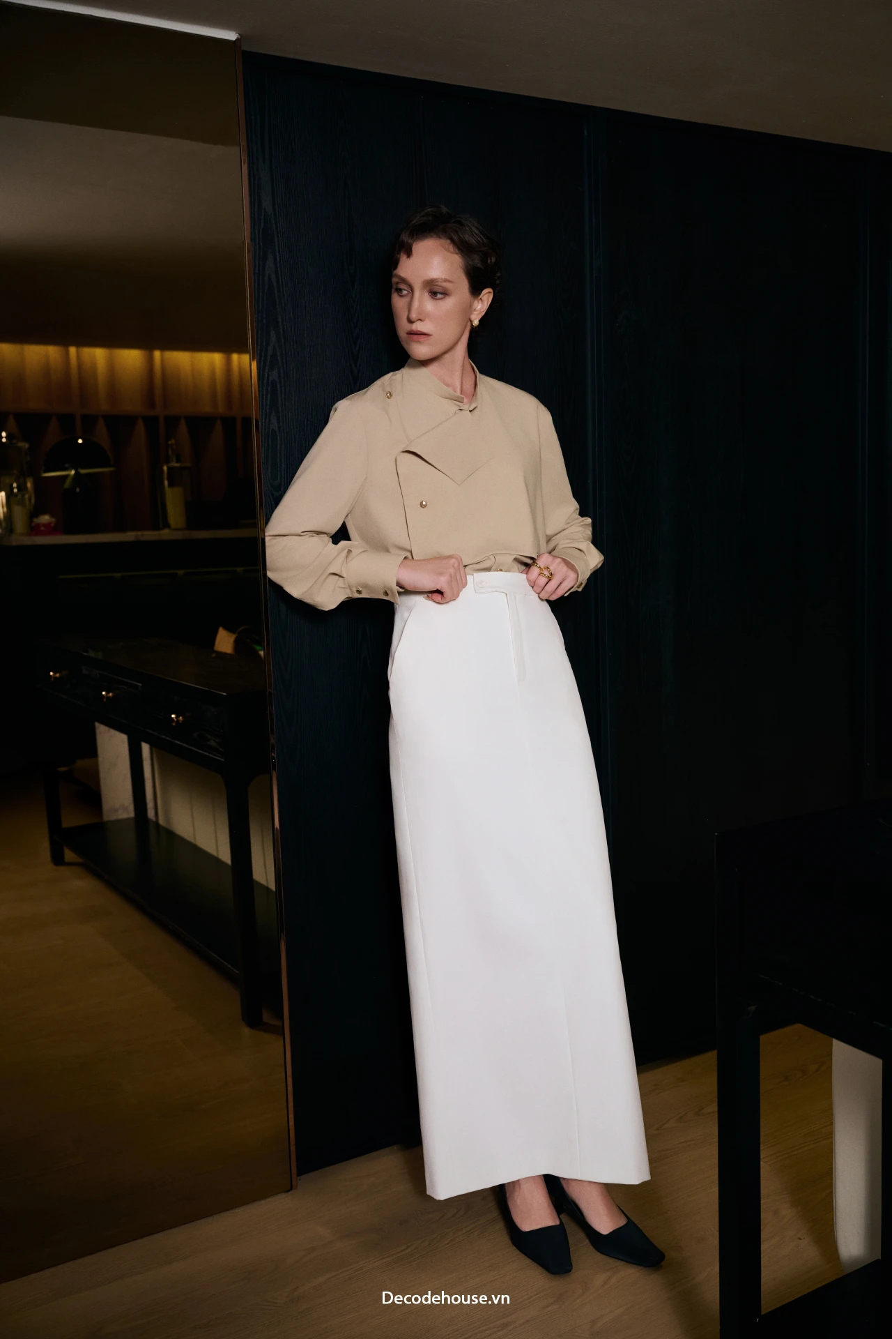 Savoy Skirt is a refined long column skirt with a clean, minimalist silhouette that elongates the figure and maintains a seamless, elegant overall look. Crafted from premium Korean twill, it delivers a sophisticated, powerful presence without being overstated.