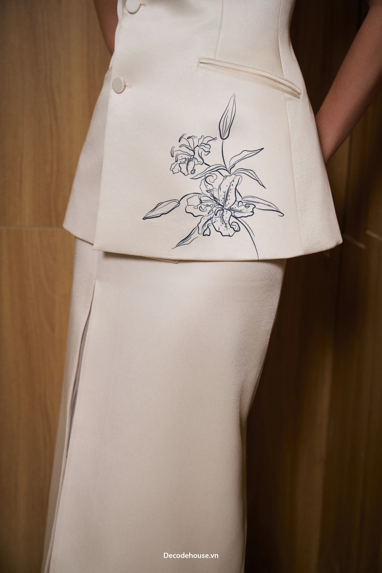 Usage: Perfect for events or sophisticated settings requiring quiet luxury and a memorable silhouette.