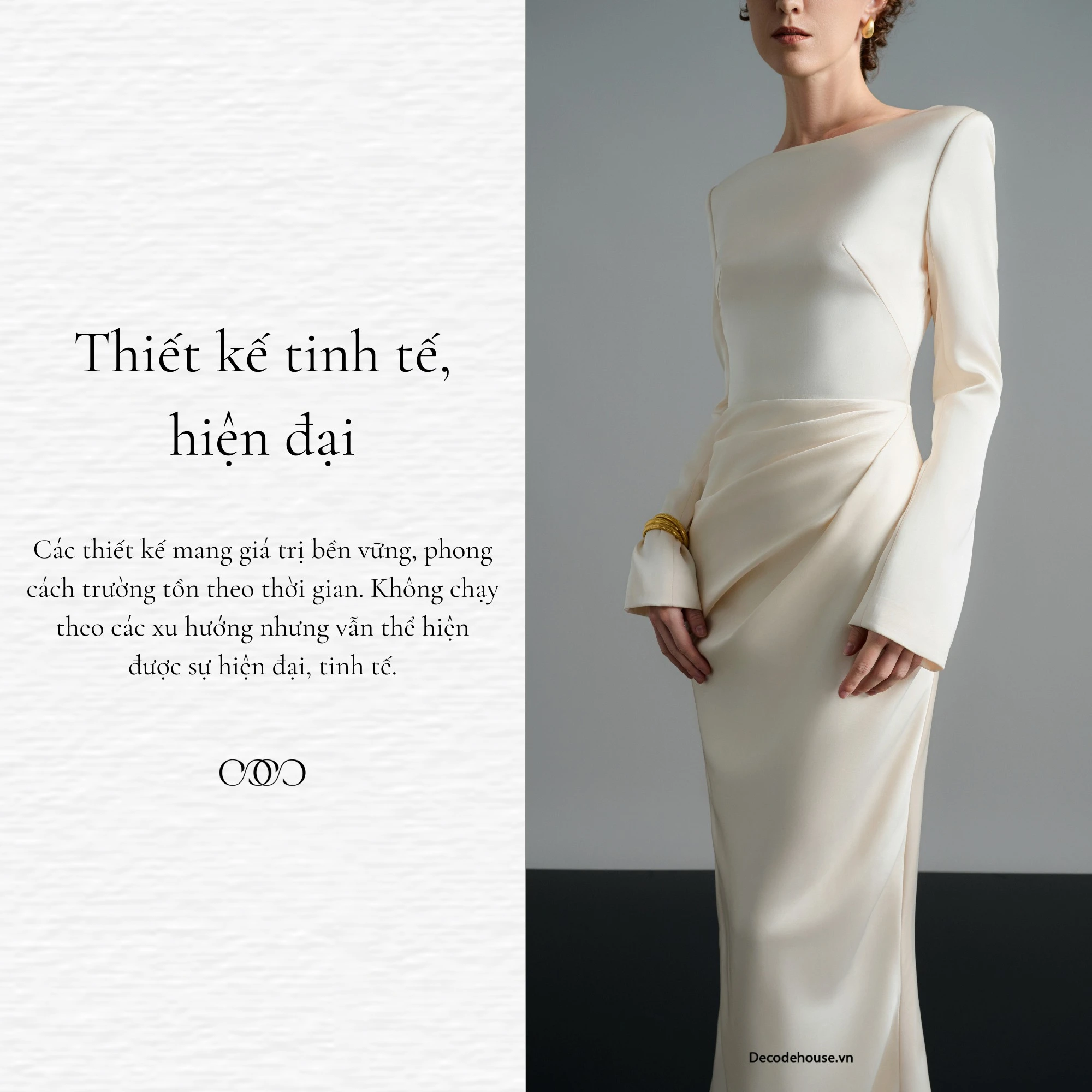 “Các thiết kế mang giá trị bền vững, phong cách trường tồn theo thời gian. Không chạy theo các xu hướng nhưng vẫn thể hiện được sự hiện đại, tinh tế.”